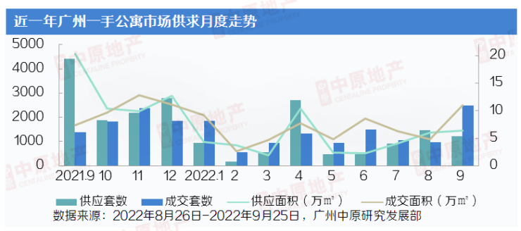 据广州中原研究发展部监测,9月广州商业市场供应惯例回升;