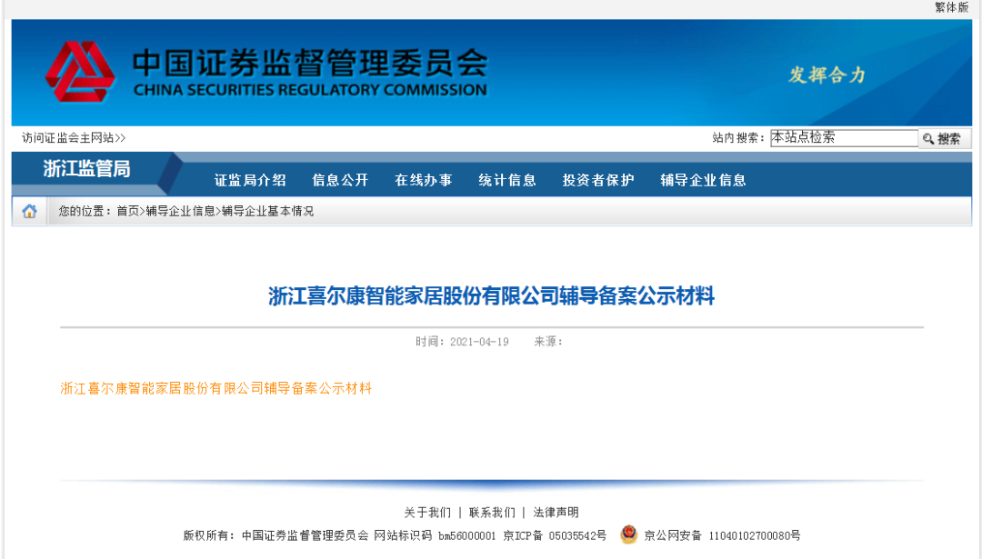 据中国证监会浙江监管局消息称,浙江喜尔康智能家居有限公司(下称“喜尔康”)已同安信证券签署上市辅导协议,并于4月19日在浙江证监局完成备案。辅导时间约为2021年4月至2021年10月。