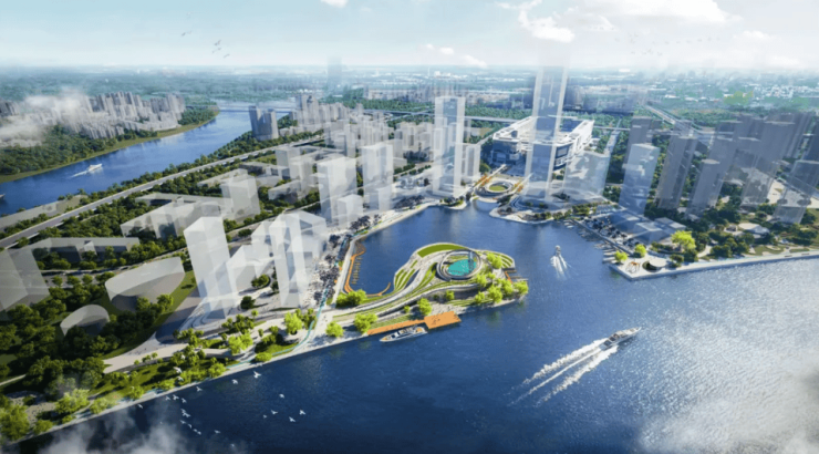 在白鹅潭滨江岸线上,东沙国际商贸港将与白鹅潭大湾区艺术中心、万象城、广州聚龙湾太古里等重点项目串珠成链,助力白鹅潭加快建设世界级地标商圈和打造珠江沿岸高质量发展重要增长极。