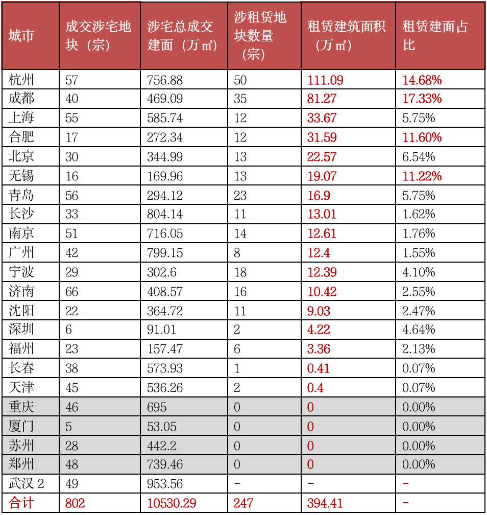 表:22城2021年首批集中出让涉租赁地块成交情况
