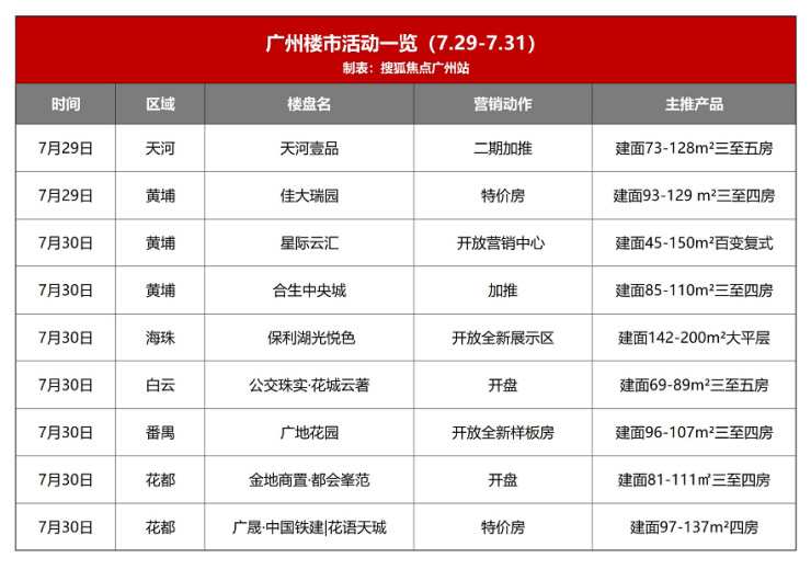 而周末活动更加热闹:公交珠实·花城云著、金地商置都会峯范开盘;保利湖光悦色开放全新展示区、星汇云际开放营销中心、广地花园开放全新样板房、佳大瑞园等项目推出特价房...
