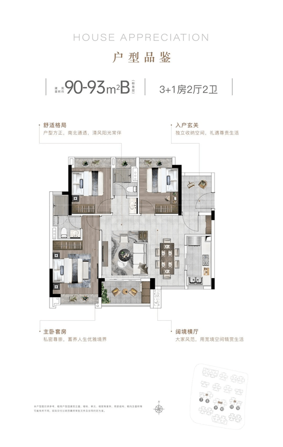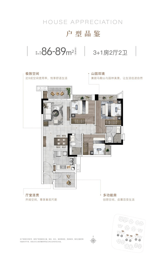 项目主推建面约85-125平2+1至3+1房,户型采用经典N+1房的设计,主打多一重空间,赠送面积较大,可满足刚需及改善人群的多种需求。