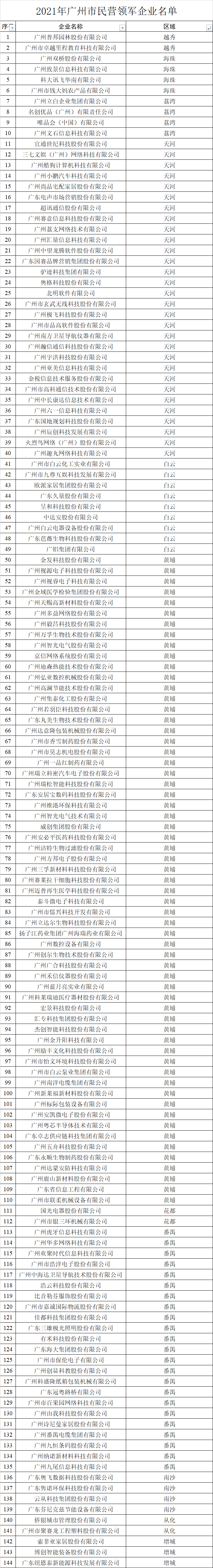 近期,广州市工业和信息化局对2021年首批广州市民营领军企业名单进行了公示,共有144家民营企业: