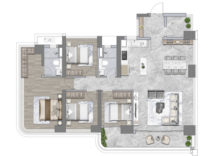 约15.2米南向巨幕面宽,约8.4米跑道级南向观景阳台,270°超级环幕客餐厅,更显通透明亮,直接对望百亿级设计之都城市天际线。采用LDKB+X灵动设计,阳台、客厅、餐厅、中西交互式双厨、X空间一体贯通,动线流畅,极大拓宽家庭公区,款待宾朋、家庭宴请、亲子娱乐等游刃有余!270°环幕瞰景南向套房主卧,搭配步入式衣帽间+宽敞明卫,与爱人一起同享星级居家体验。