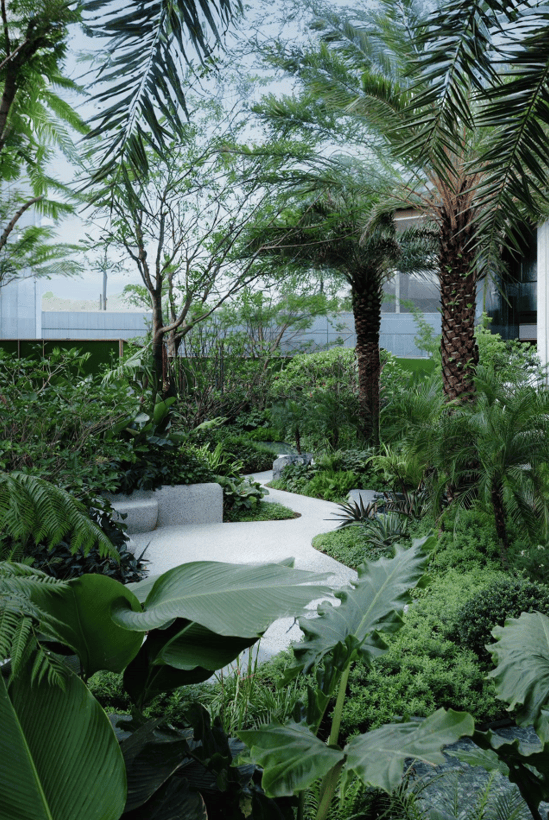 中建·白云之星公区园林设计灵感源于新加坡高端银峰公寓,由JTL加特林大师级团队亲自操刀,打造“都会林境”三重立体度假园林。开阔的景观视野、流动水景+漂浮岛屿的景观布局,浓郁的多层次热带植被组合,构建艺术化与度假感相结合的森居住宅场景。
