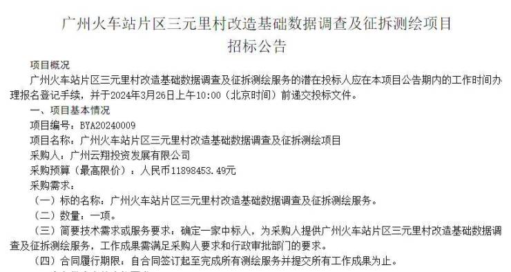 2023年9月,广州市政集团发布《越秀区瑶台片区城中村改造项目(沙涌南自然村、瑶台自然村、王圣堂自然村)规划研究方案及做地方案编制服务招标公告》。