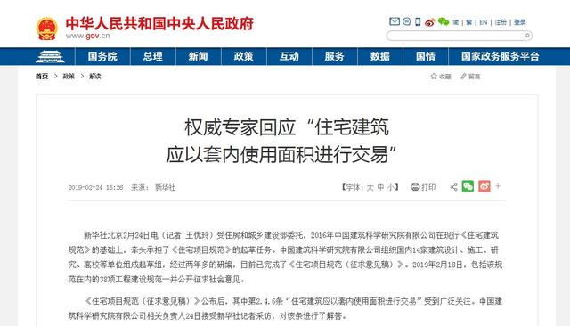 这也是住建部首次在官方文件中明确提出房屋应以套内面积来进行交易。