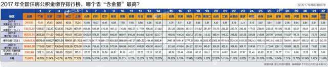 2017年全国住房公积金缴存排行榜,哪个省“含金量”较高?