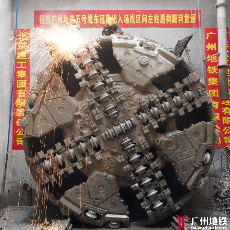面对诸多施工难题,广州地铁和施工单位中铁广州局、中铁六局和北京建工的地铁建设者们针对盾构掘进施工过程中存在的各类风险源,集思广益,研讨并制定各项安全生产相关措施,编制盾构始发、掘进、到达,以及下穿河涌和管线等专项施工方案,确保盾构掘进施工过程中的平稳顺利。同时,建设者们针对复杂的地质情况,定期组织召开技术讨论会优化施工方案、细化盾构掘进参数、严格控制出土量和注浆量、加强盾构掘进施工过程中的各项监测,充分保障施工区域临近建构筑物和管线的安全。