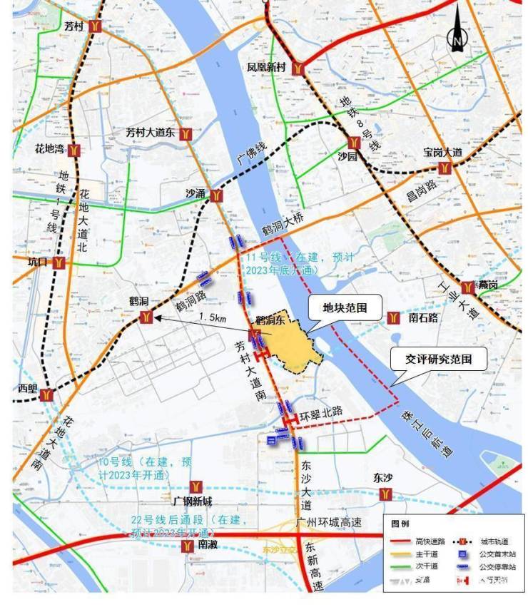 广船地块被分为三期,一期地块于2020年1月出让,广船二期、三期地块内含原广船自主改造地块5.57公顷,现拟全部纳入收储。本次进行规划优化的是广船二期地块,项目地块位于荔湾区白鹅潭商务区东沙片区,规划范围面积22.59公顷,地块所在的AF0403规划管理单元面积140.2公顷。该项目距离广州南站约9.6公里,西侧为广州地铁11号线(2023年建成)及佛山地铁11号线(远期规划)鹤洞东站。