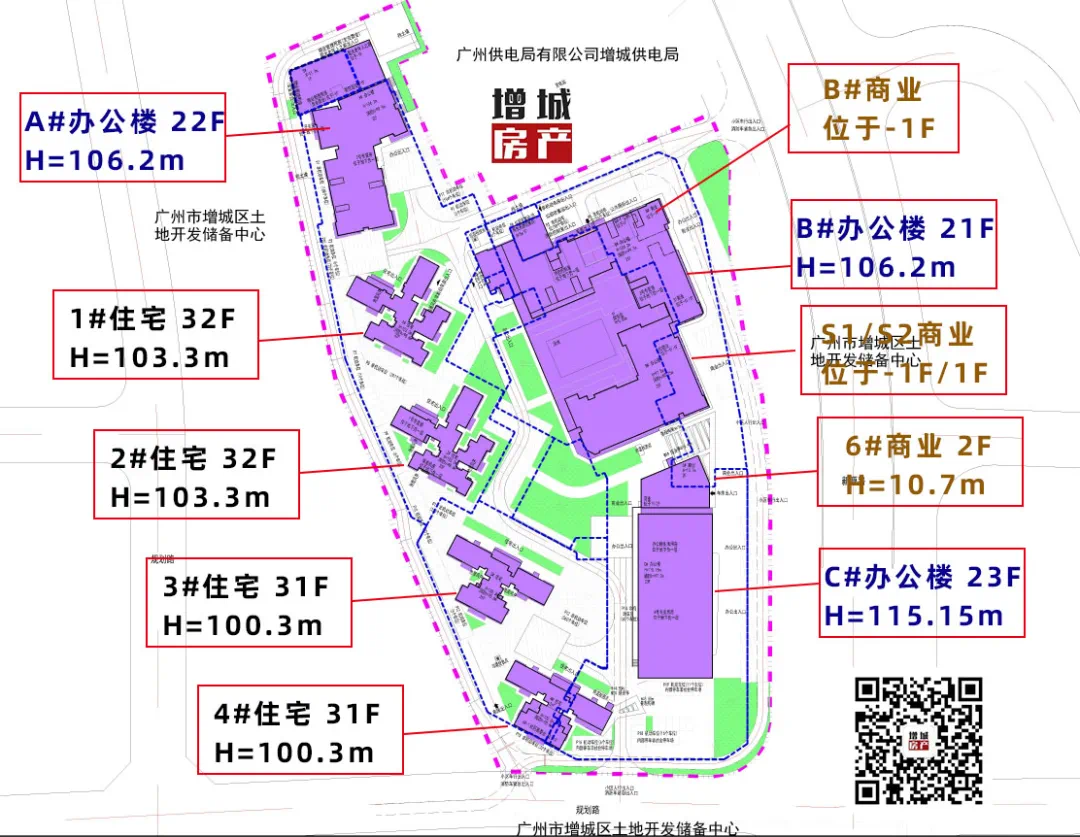 住宅一共是4栋,1#和2#住宅均为32层,高度103.3m,3#和4#住宅均为31层,高度100.3m。