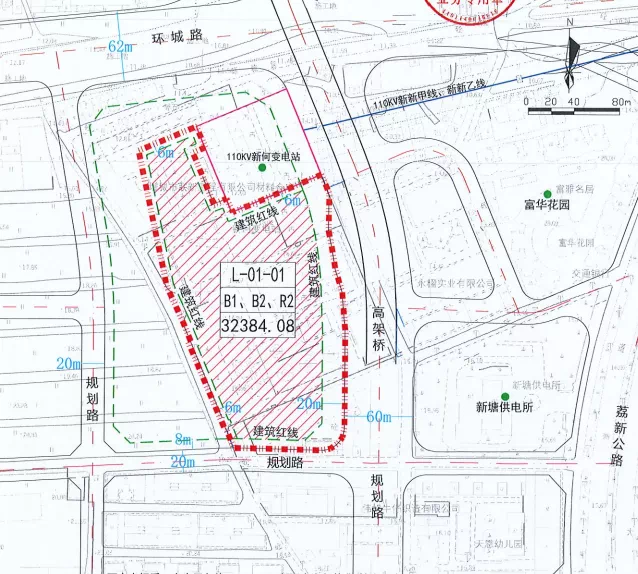 公告显示,项目总用地面积为32384.08平方米,计容建面为178112平方米,建筑密度为33.7%,绿地率为10%。