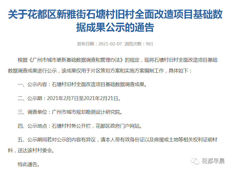 2019年5月10日,东莞村全面改造项目基础数据核查项目开始招标。