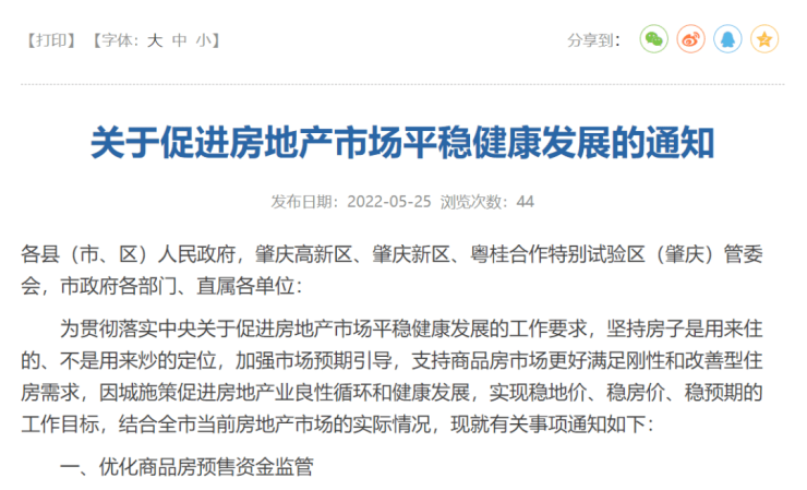 近日,广东肇庆6部门联合印发《关于促进房地产市场平稳健康发展的通知》,提出优化商品房预售资金监管、加大金融支持以及提高首套住房公积金贷款上限等举措。