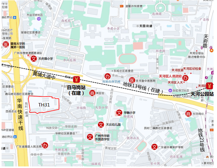省工业设备安装公司地块位置相当好,距离在建中的地铁13号线二期白马岗站约500米,宗地面积不大,仅9242㎡,容积率4.3。周边有暨南大学附属第一医院、华侨医院、太阳新天地、天府路小学,天河区政府等。
