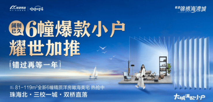 坐落于翠亨新区的中山·敏捷锦绣海湾城,坐享约4.9公里伶仃洋海岸线及深海镭温泉,背靠五桂山,绿荫环抱、富氧环绕,内享功能丰富的运动公园、诗意的园林景观、醇熟的生活配套、便捷的出行环境,满足业主对品质生活的追求。项目建筑面积约81-119㎡美宅热销中,全新6幢精质洋房瞰海美宅重磅加推。