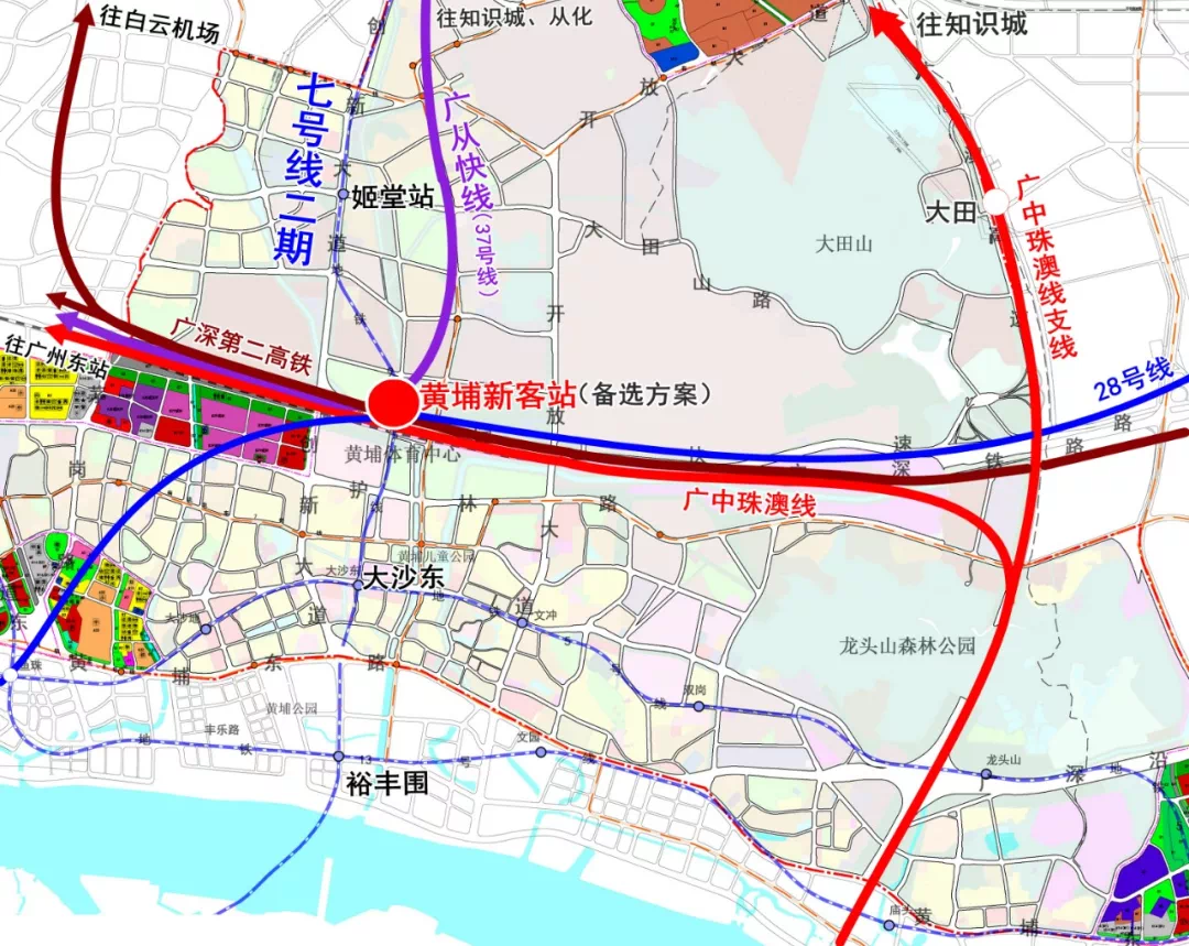 官方明确提出,本次规划将多条高铁引入中心城区,而“黄埔站”是一个重要中转站。