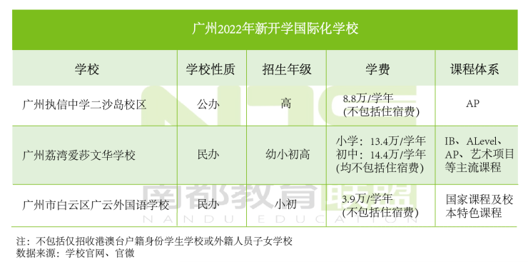 广州市2022年新开学国际化学校。制表:实习生 高泽芝