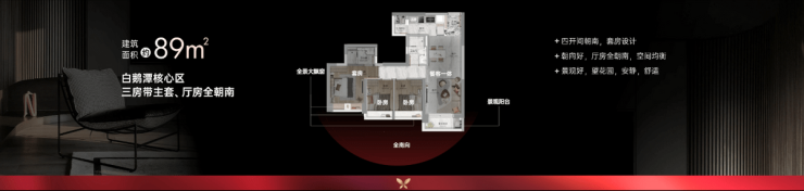 “风光同权“的全南户型。不同户型的主要空间都朝南向排布,尤其卧室几乎做到了100%全朝南,无论居室的大小、年龄的长幼,每位业主都能得到同样的善待与关照。