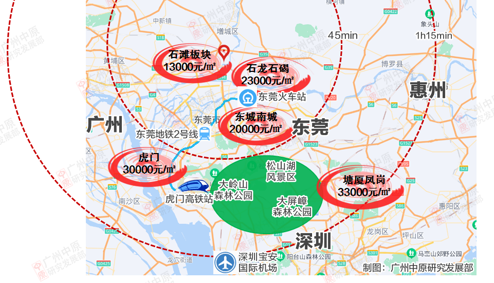 1小时车程内覆盖了穗莞深惠湾区4大城市是粤港澳大湾区中部、广深两大都市圈衔接节点,其区位价值不言而喻。