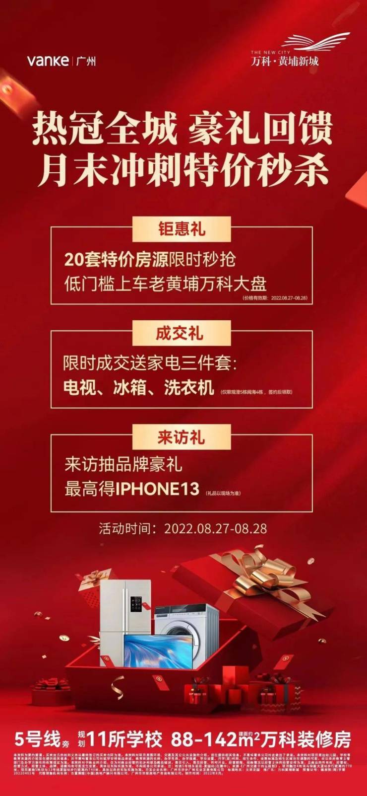 当红“炸子鸡”万科黄埔新城推出20套特价房源,成交赠送家电三件套,来访有机会抽取iPhone 13等等......