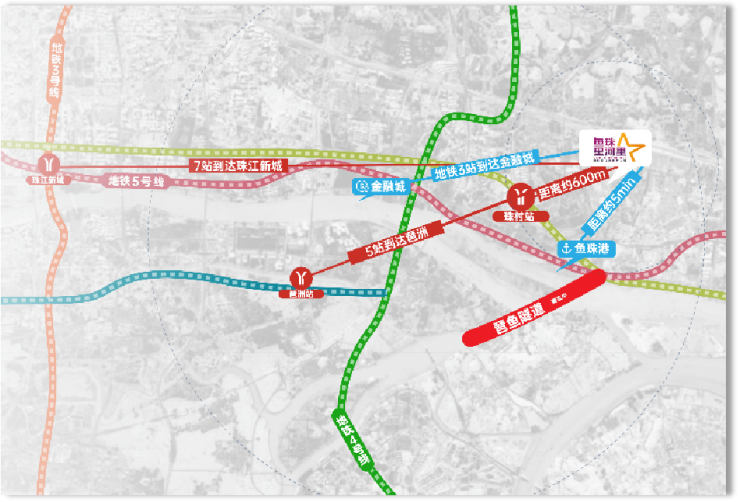 项目周边交通便利,临近地铁站500米(13号线珠村站)5分钟可达鱼珠港,地铁3站可达金融城,7站直达珠江新城,周边汇集各类优质城市配套、商圈云集。