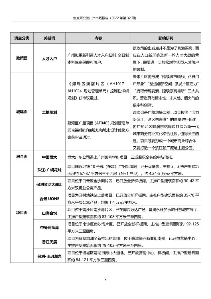 近期多个全新项目陆续亮相,或多个项目计划推新,预计8月底、9月初,楼市或迎来一波推新热潮。另外,广州放松本科生落户政策,尽管对房地产带来的直接刺激比较有限,但从长远来看,还是有利于增加城市总的人口基数,为未来储备需求。
