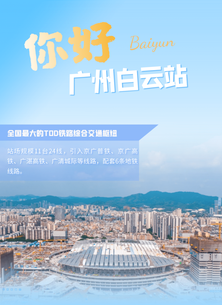 广州白云站是目前全国最大的TOD大型综合交通枢纽,是全国“十三五”铁路规划中的重要项目,也是广州铁路枢纽规划“五主四辅”客站中的主要客站之一(其中“五主”是指广州站、广州东站、广州南站、佛山西站和广州白云站,“四辅”是指广州北站、南沙站、新塘站、黄埔站)。