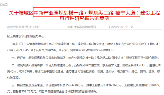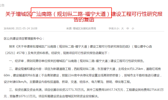 广汕南路和中新产业园规划横一路来了!近日,增城区发展和改革局同意批复了广汕南路(规划纵二路-福宁大道)和中新产业园规划横一路(规划纵二路-福宁大道)的可行性研究报告!