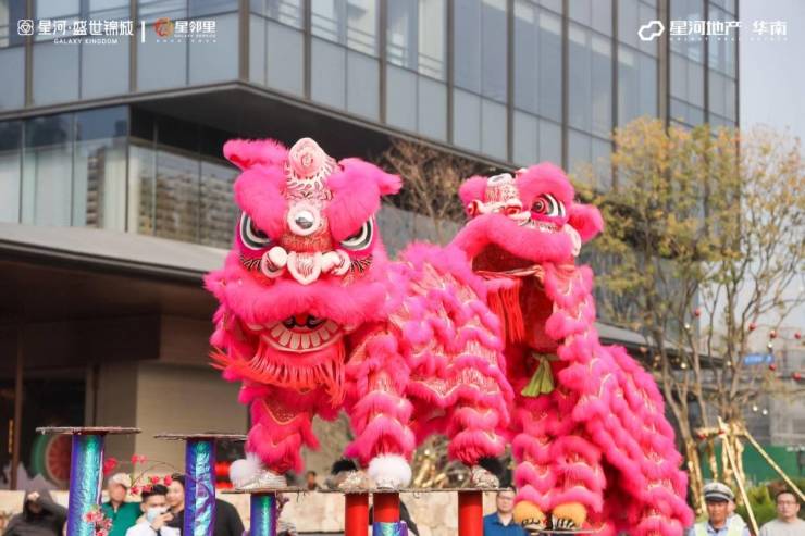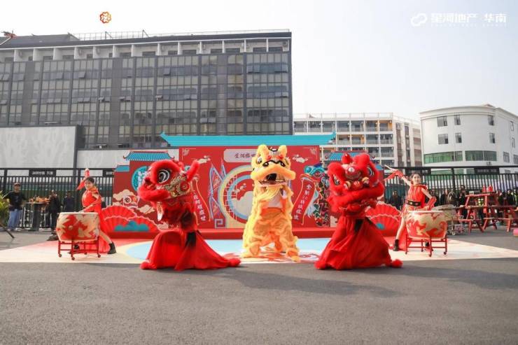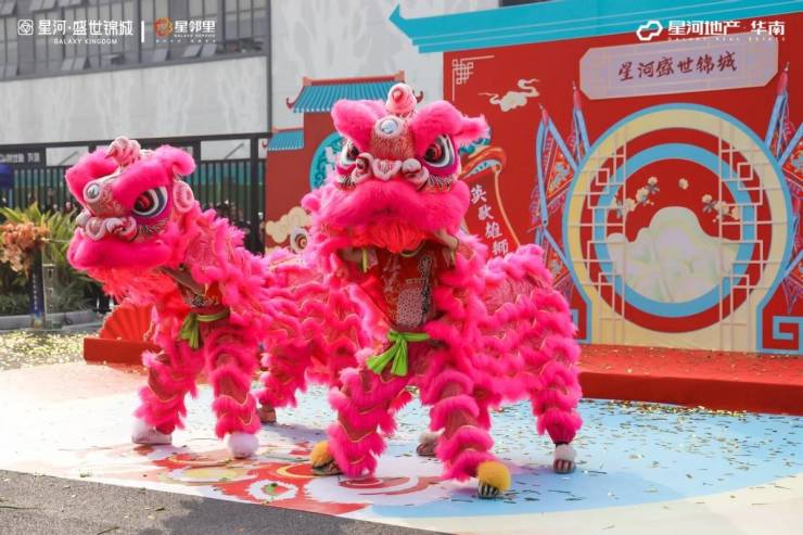 于万众翘首期盼中,随着一段激情澎湃的舞狮献映,星河盛世英歌雄狮耀盛世——“全新2.0样板绽放·致敬进阶人生”开放仪式正式拉开序幕。