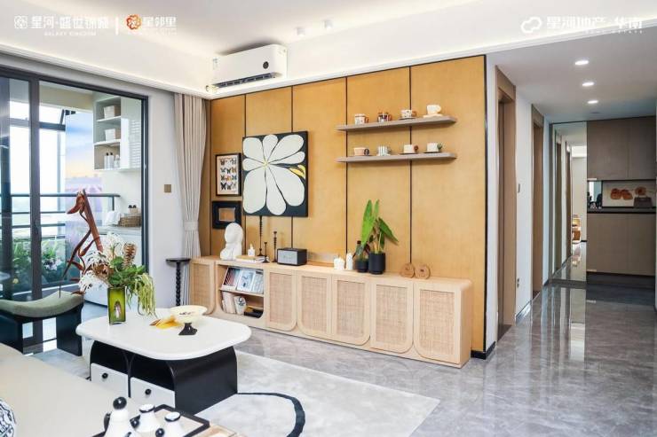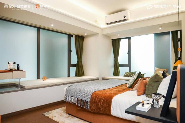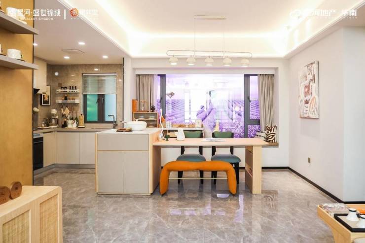星河·盛世锦城自面世以来,便一直受到瞩目追捧。而这一次,小高层2.0样板房的开放,再一次掀起所有人关于城芯低密居的想象。本次样板房的华丽面世,以未来生活场景重构空间,深研当代进阶家庭居住空间使用频率与需求,打造升级低密人居。四开间朝南,一步到位提升空间的舒适度和尺度感;超6米观景阳台,视野开阔,私藏园林与万博风光;主卧套房设计,搭配270°大飘窗,释放更多采光面。空间设计升级,奢阔生活尺度,臻享IMAX级全景视野,致敬进阶人生。
