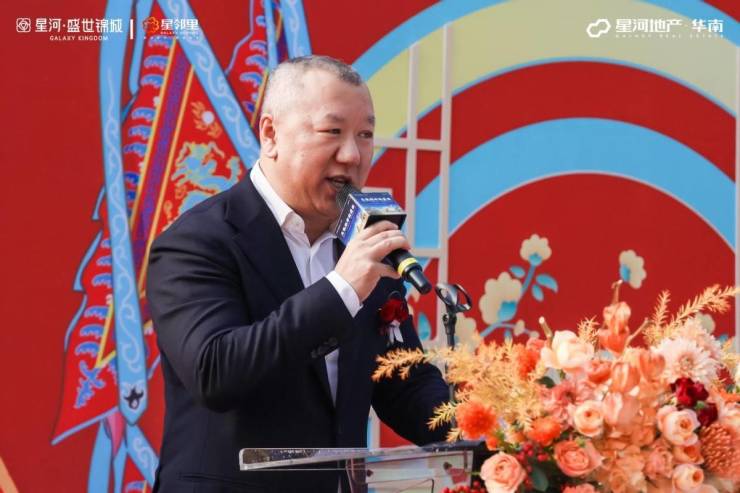 主持人开场之后,星河·盛世锦城项目总经理张萌先生发表致辞,对出席活动的领导及社会各界人士表达了诚挚的谢意与欢迎。他表示:2024年是星河·盛世锦城的全面进阶年,而作为承载城市至高人居使命的盛世锦城,在这座富有人文底蕴的城市立序新篇——广州少有的低密小高层的全新升级之作,将给人们带来更好的低密居住环境以及全维度的配套升级。星河始终坚持以业主为中心,不断迭新品质和服务,将会为业主带来更好的生活品质、归属感与幸福感。