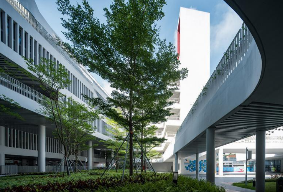 按照现代简约的设计手法,加强建筑间的解构感,从建筑的形态,各功能的穿插入手,使得建筑充满时代感,颜色主要以白色为主穿插着符合学校氛围的红色、灰色、黄色等,让校园更具活力。建筑设计上一方面要符合增城区气候特点,另一方面又要满足学校在形象上具有“整体性、时代性、教育性、参与性”的设计要求。