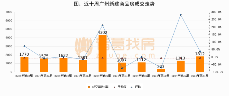 【广州成交周报】第31周新房成交1812套,涨价房源624套