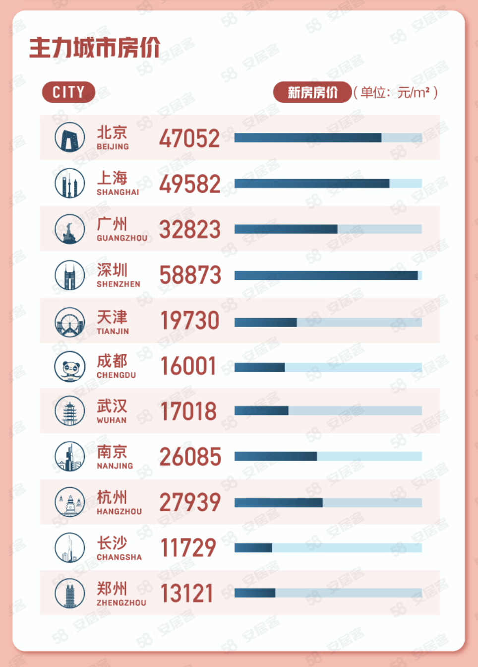 报告,1月65城新房线上均价为17582元/㎡,环比微跌0.15%,全国重点监测的65城中有31城新房房价环比上涨。其中,深圳新房线上均价为58873元/㎡,上海和北京分别为49582元/㎡和47052元/㎡,广州为32823元/㎡。