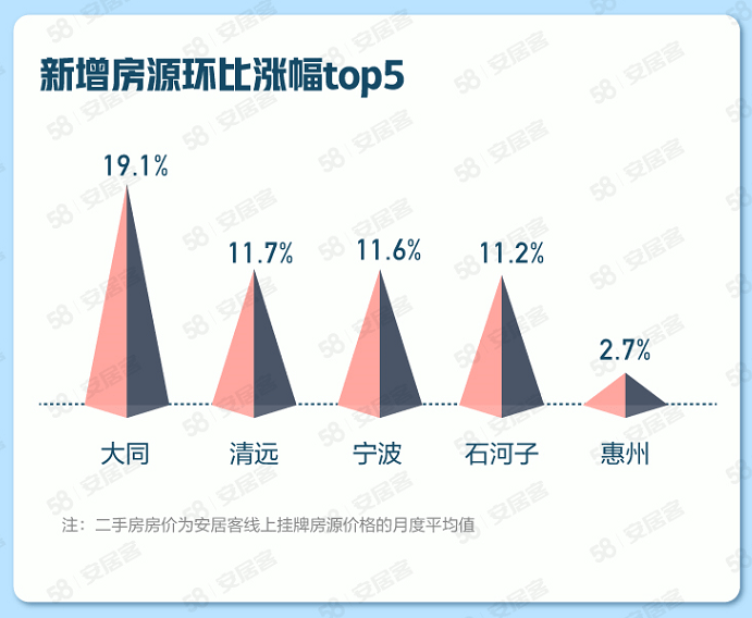 1月份,全国新增挂牌房源量环比出现下滑,一线城市均有一定程度的下跌。而大同、清远、宁波、石河子、惠州等城市新增挂牌房源量环比均出现不同程度涨幅,或多为应对春节返乡置业人群而纷纷挂牌。