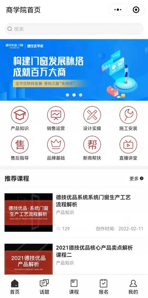 4月1日德技优品门窗商学院小程序「德技优享家」上线啦!这是继德技优品门窗全新官网上线后,品牌升级的又一大动作!德技优品门窗以便捷、智能的数字化技术为利器,助力经销商团队以知识为武装,强化知识技能,不断提升门店竞争力! 「德技优享家」 深化 · 专业 · 提升 (图片来源:德技优品门窗供稿,侵删) 「