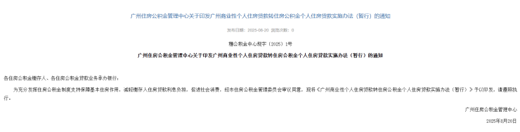 8月20日,广州住房公积金管理中心发布关于印发广州商业性个人住房贷款转住房公积金个人住房贷款实施办法(暂行)的通知。
