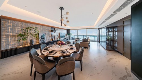 霍英东集团南天名苑,建面约365㎡岛尖一线环幕江景大宅,全新『悦岛』组团,“美学简约”“现代欧式”双主题示范单位倾城绽放,共同开启庄园岛主生活新体验!