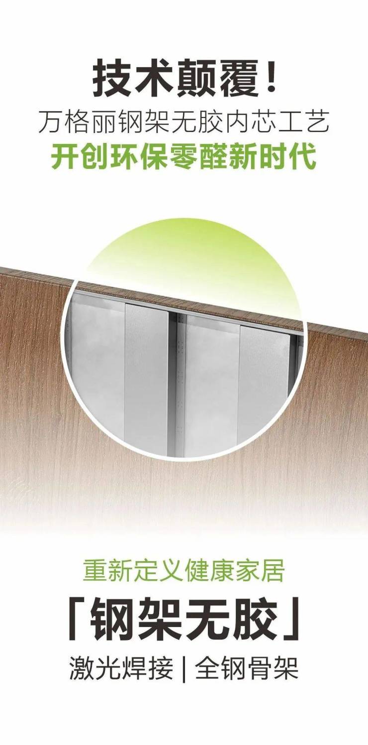 这项新工艺的面世,标志着家居从传统“胶粘时代”到无胶零醛“全钢时代”的重大跨越,不仅提升了万格丽产品和品牌的核心竞争力,对定制行业也具有划时代的战略意义。