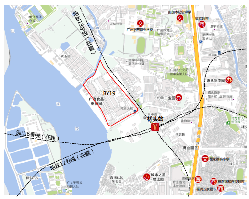地块位于广州西岸广海路,邻近珠江,另距离地铁槎头站约500米,且邻近环城高速,交通较为便利。