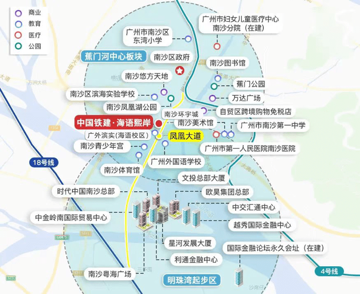 其次,海语熙岸所在的南沙中芯,区位配套历经数十年的沉淀。看一张图,就知道这是什么样的资源量级: