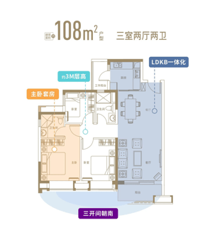 于是,海语熙岸特别升级了客餐厅,在经典竖厅的基础上,融入LDKB一体化设计。