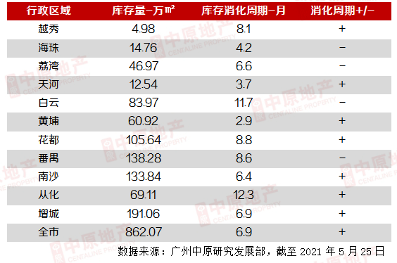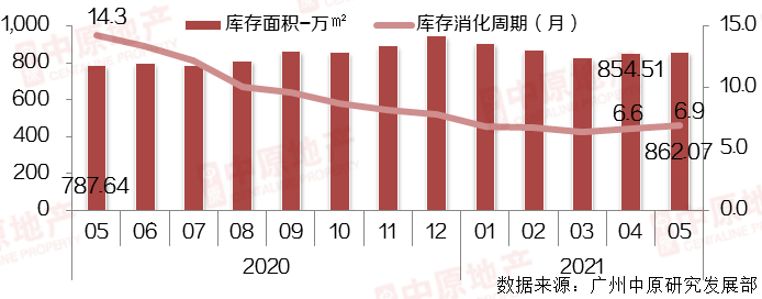 截至5月末,全市库存量862.07万㎡,去化周期6.9个月。