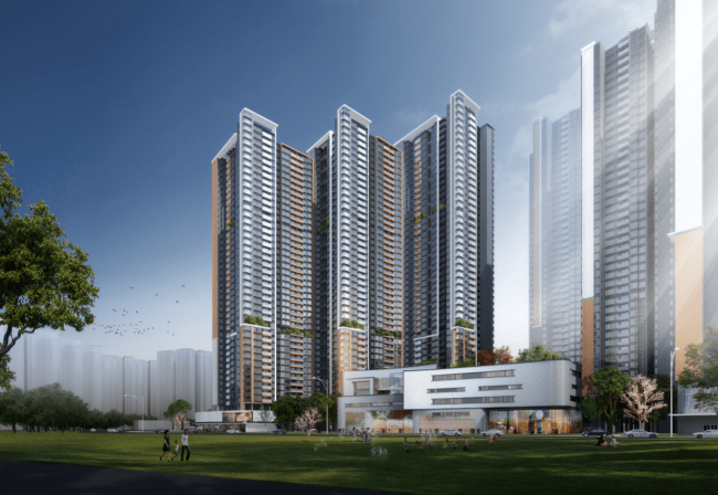 项目南侧规划有约12万平的商业中心,西北侧规划1所九年一贯制学校。距离嘉禾望岗地铁站约直线距离500米。项目将推建面约85m²、105m²、123m²、143m²三至四房,据说使用率为100-110%,吹风价5.5万/㎡。
