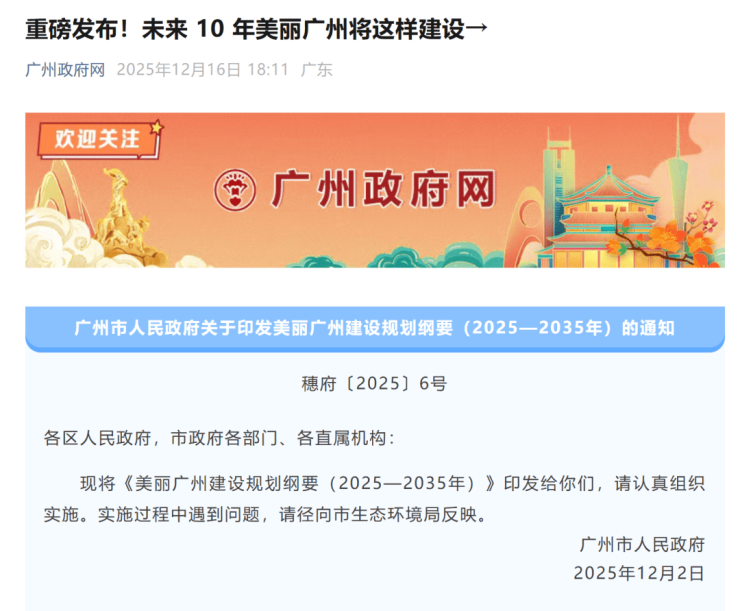 本月初,广州市政府出台《美丽广州建设规划纲要(2025—2035年)》。