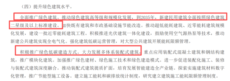 二是,积极推广绿色低碳建造方式,大力发展多体系装配式建筑。