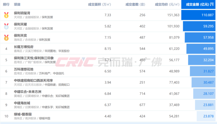 以2025年1-11月广州商品住宅成交金额TOP10排行榜为例: