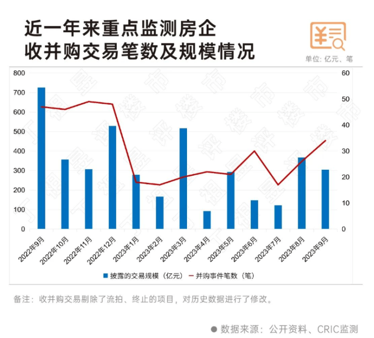 根据克而瑞研究中心统计,重点监测房企8月和9月两个月收并购事件合计达到60件,披露的交易对价达到672亿元,占全年收并购事件和交易规模接近3成。