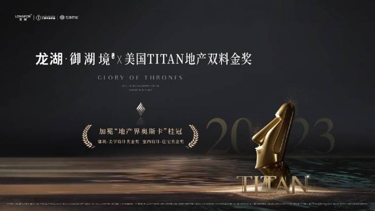 作为龙湖全新迭代的新一代豪宅产品,龙湖广州·御湖境每一处细节匠心镌刻,以大师技法、深厚造诣再次惊艳,一举问鼎国际殿堂级荣誉——2023美国TITAN地产双料金奖(建筑-美学设计类金奖、室内设计-住宅类金奖),享誉国际,匹配世家风范。